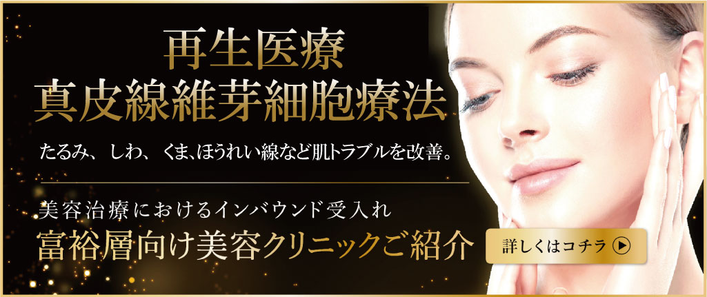 日本の美容・医療再生治療を受けたいと考えている中国人、ベトナム人富裕層が年々増えています。 特に人気なのが、『真皮線維芽細胞療法』です。 最近では、日本に通院する中国人、ベトナム人富裕層が増えております。 様々なサービスを中国人、ベトナム人富裕層に届けたいと考え、インバウンド受入れクリニックをご紹介いたします。 ご紹介するクリニック様は、明確な治療法、安心して治療受けられるよう徹底しております。
